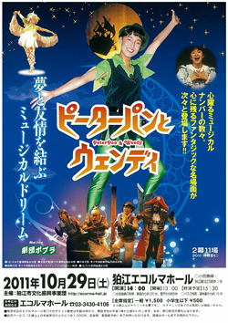 劇団ポプラがお贈りする「永遠の少年」ピーターパンとウェンディの物語は、子供から大人まで、楽しめるミュージカルです。